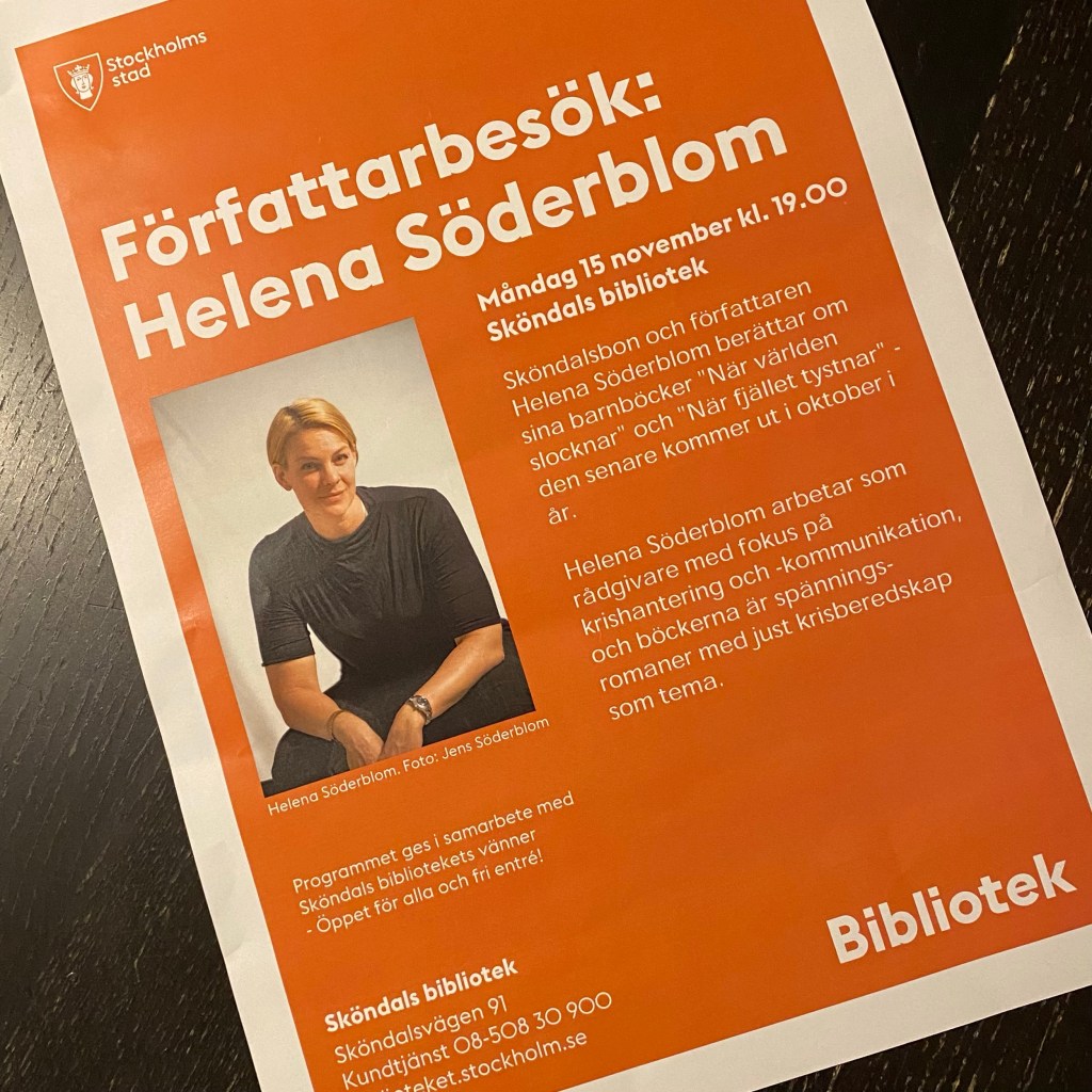 Ikväll hade jag glädjen att berätta om mina böcker, min process, mig själv och mina inspirationskällor för Sköndalsbibliotekets vänner. Första författarbesöket här på snart två år, så det var fler än jag som var taggade till tänderna.